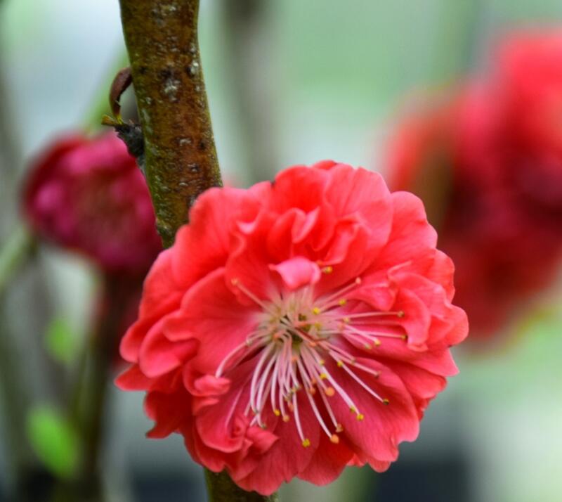 紅色臘梅是落葉小喬木,它的樹形并不高大,枝條呈現出彎曲錯落狀態,帶給人不一樣的美感刺激,在每年三月份左右,美人梅就開始開花,這時候的陽光照射可以讓它的開花效果更好,花朵會持續到四月份左右,開花以后就會慢慢長出嫩紅色的葉子。