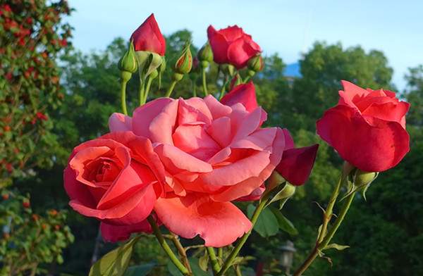 水肥管理。大花月季喜肥,尤其是喜有機(jī)肥,如廄肥、堆肥等。大花月季花期長,在其生長過程中應(yīng)注意追施化肥,以求速效,保持充足的水肥外,在花蕾期噴施花朵壯蒂靈,可促使花蕾強(qiáng)壯、花瓣肥大、花色艷麗、花香濃郁、花期延長。