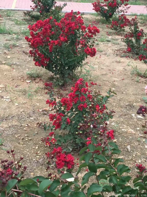紫薇,棵型總高0.5~2m高之間,樹葉開花的形態根據種類不同有差別,有一些較為細長,有一些較圓,紫薇花朵顏色是增加,如大紅,粉色,黃色,淺白色等,花期很長,開花量大,每年是開花的時間期間從6月到9月初,種子9~10月才熟,有較好的發芽水平。