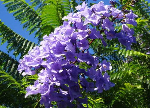 分布范圍:西南地區、四川、云南、福建、廣東等地均有種植。叢生藍花楹外形特征