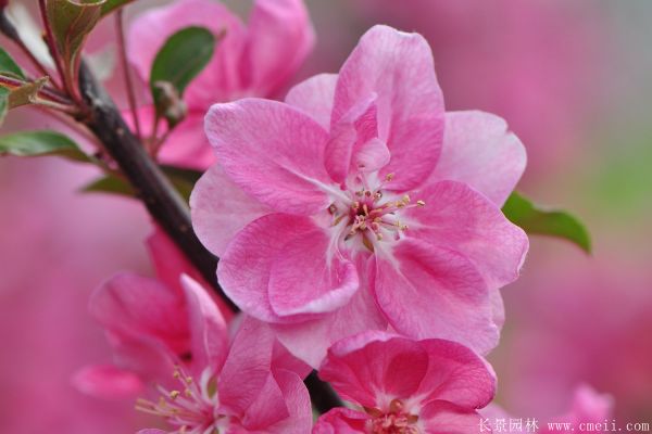 海棠有四品,皆木本,這四品指的是:西府海棠、垂絲海棠、木瓜海棠和貼梗海棠。作為傳統(tǒng)海棠的一種,木瓜海棠花色爛漫,樹形好、病蟲害少,是庭園綠化的良好樹種??蓞仓灿谕@墻隅,林緣等處,春可賞花,秋可觀果,枝型奇特,是布局園林景觀的上好樹種。木瓜海棠的品種多達百余種,有的以觀果為主,有的以花取勝。它的花期極長,可達2個月之久。