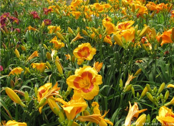 萱草,樹(shù)體高0.5~2米高左右,樹(shù)葉形狀根據(jù)種類不相同有差異,有一些很細(xì)很長(zhǎng),有一些比較圓,萱草花蕾顏色是增加,如國(guó)旗紅,粉紅色,鵝黃黃,粉白色等,開(kāi)花的時(shí)間比較長(zhǎng),花量十分大,每年的是開(kāi)花的季節(jié)時(shí)間段從6月上旬到8月,花種9~10月才熟,有較好的出苗水平。